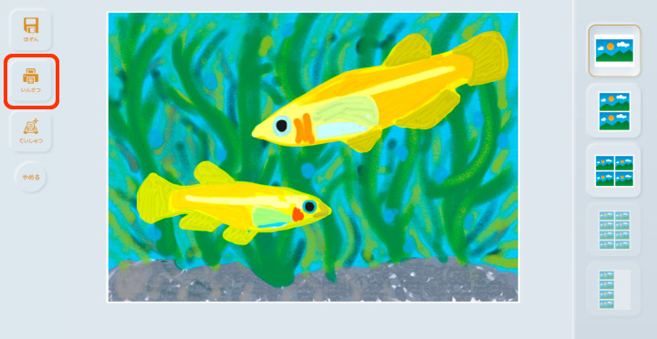 ![]() | 出来上がり | 作品の印刷や保存を行います。 |