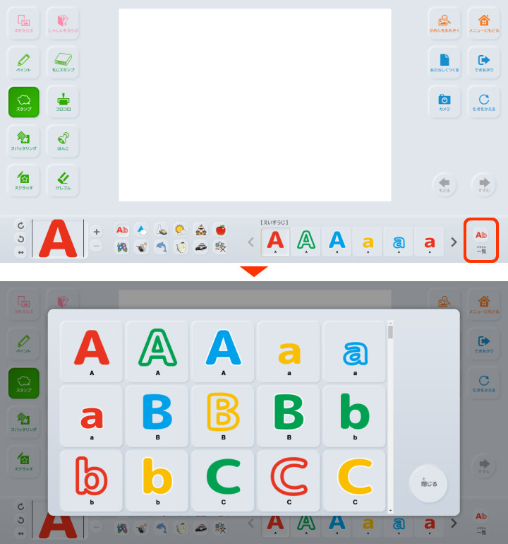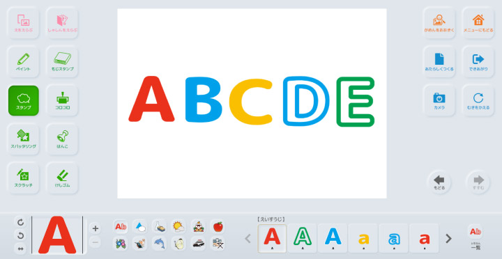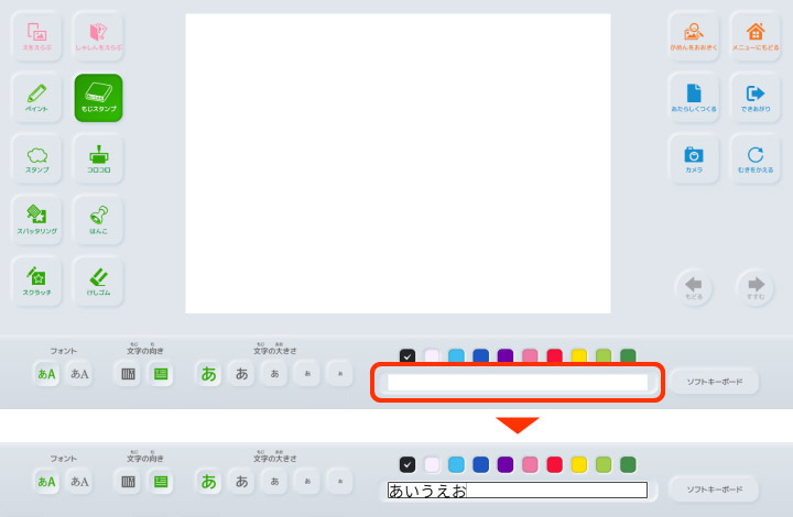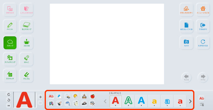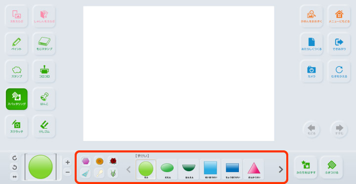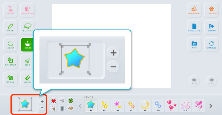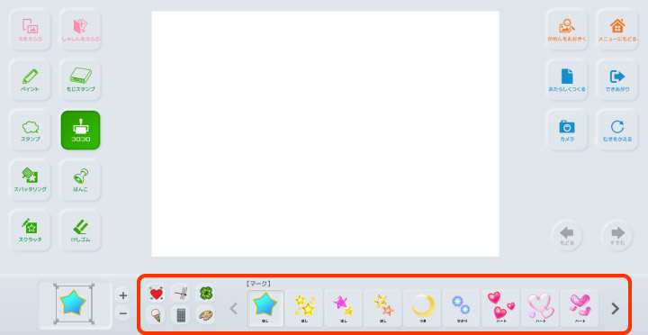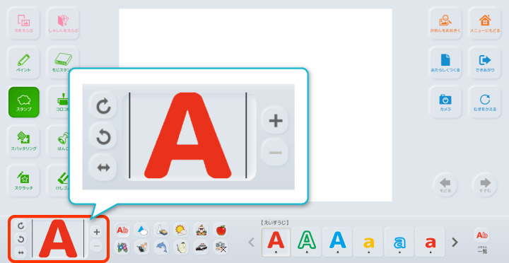 大きさ スタンプ素材の大きさを変えることができます。 画用紙をタップしてスタンプを押します。