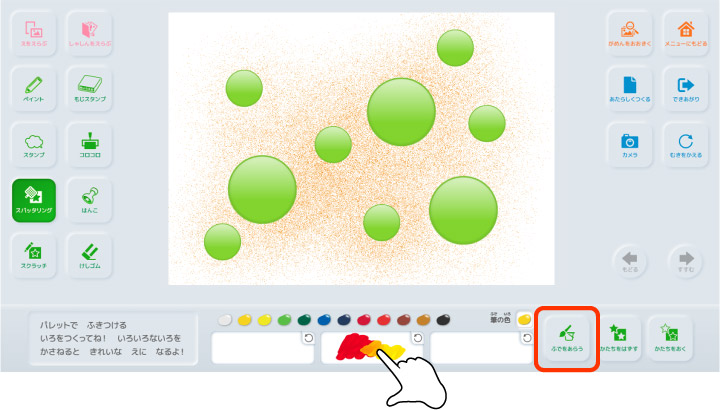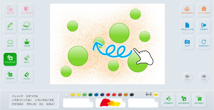 画用紙の任意の場所を指でなぞって色を吹きつけます。