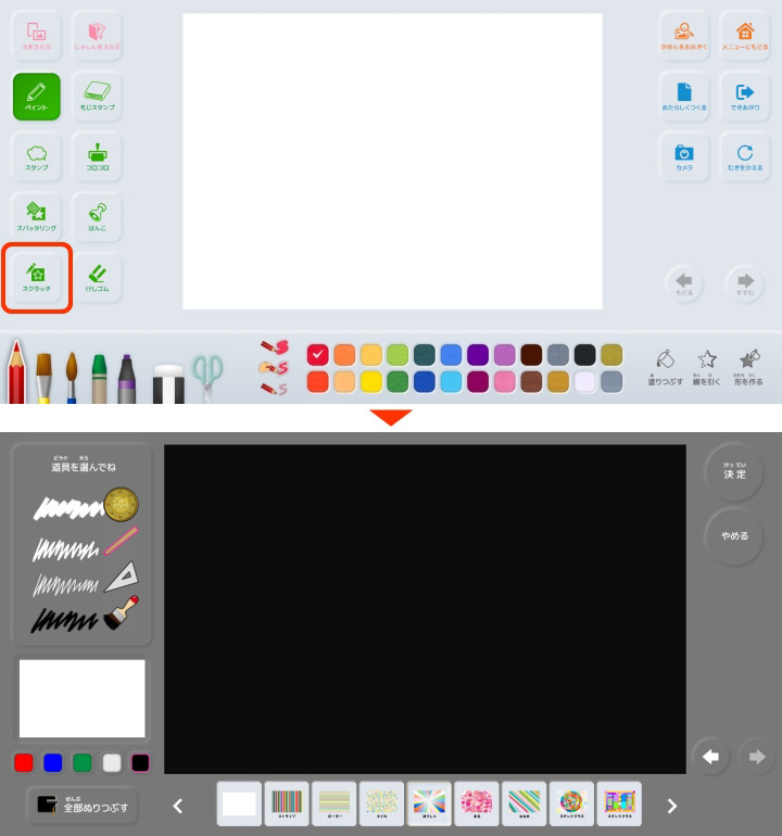 【色鉛筆】【クレヨン】【マジック】を選択した際に使用することができます。