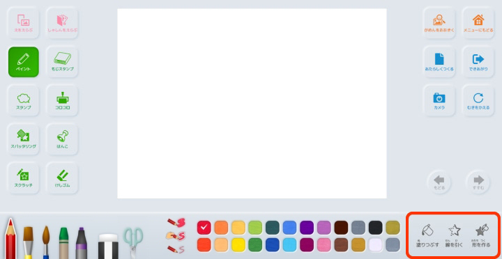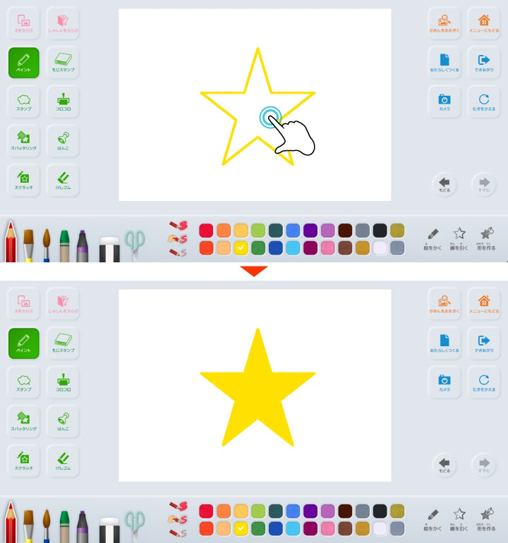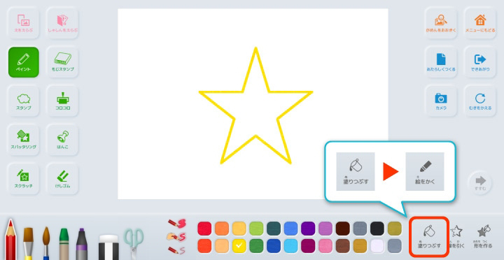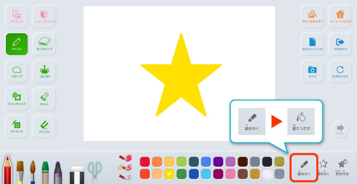 塗りつぶしをやめたいときは【絵をかく】を選択してください。