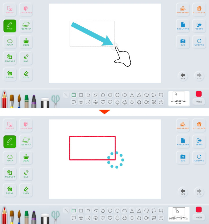左上を基点に、画用紙上をスワイプしながら大きさを決めます。