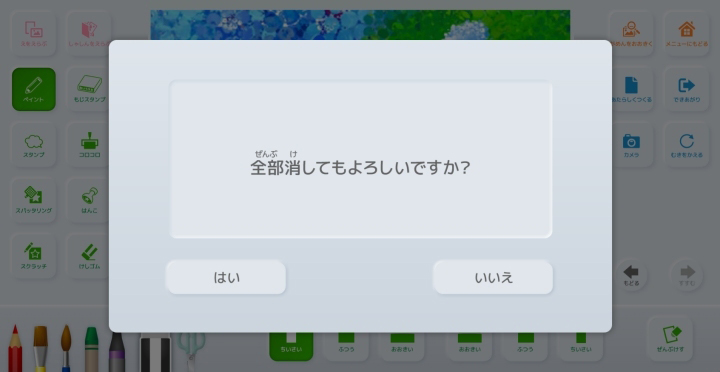 背景のイラストや写真を消す場合は、【新しく作る】を選択して、新しい画用紙を用意してください。
