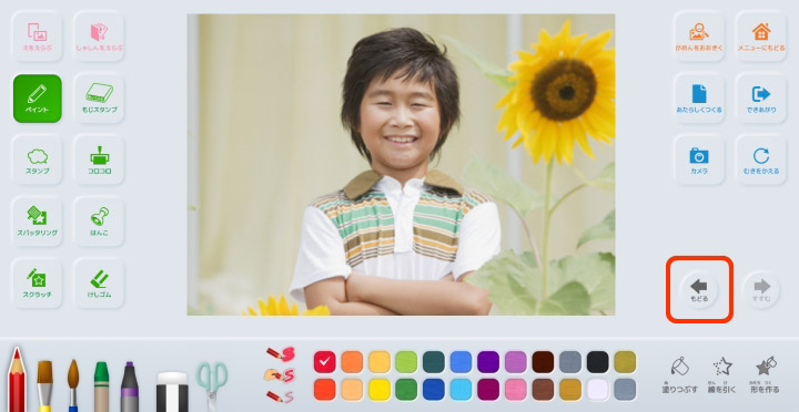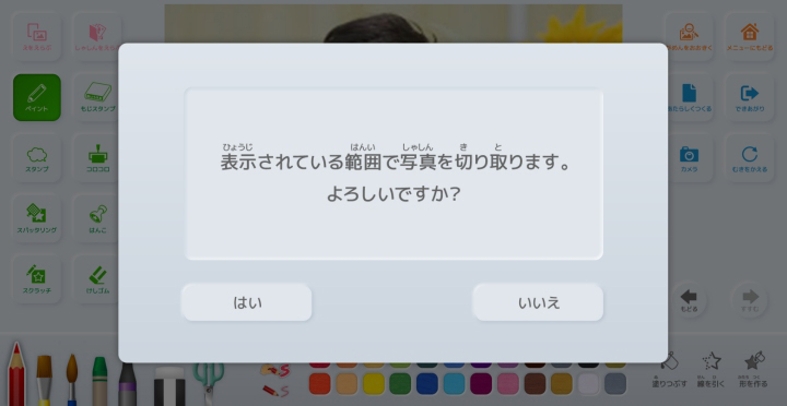 切り取りした後は「もどる」を選択すると操作のやり直しをすることができます。