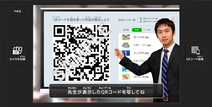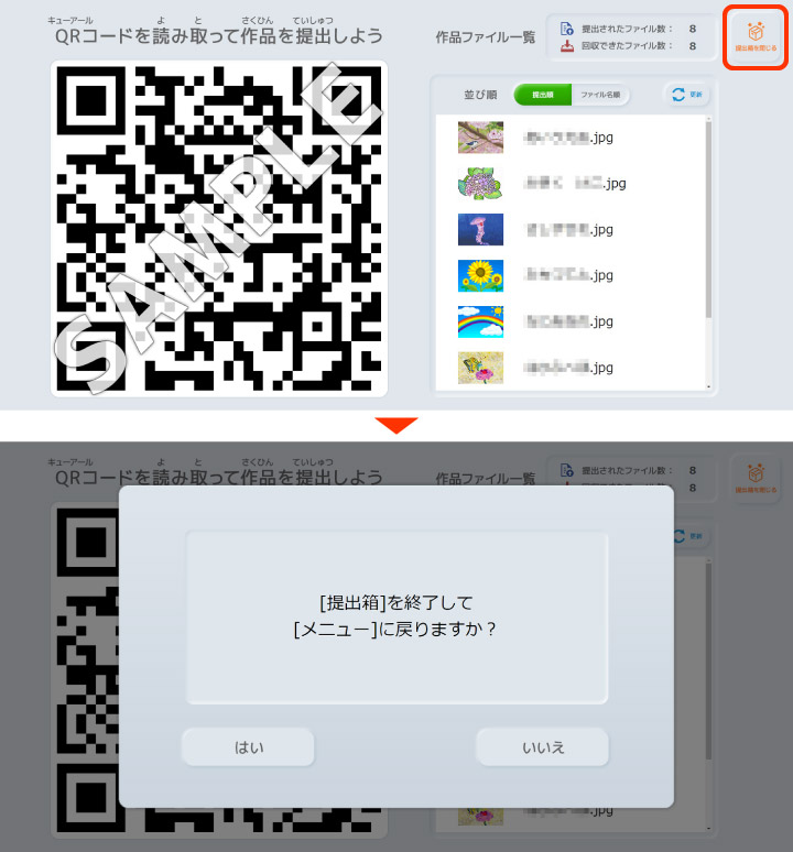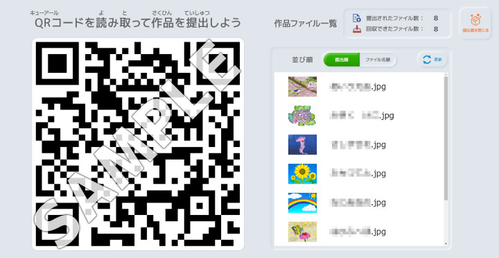 提出箱を作った端末(作品を回収する端末)にQRコードが表示されます。