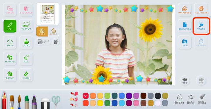 作品が完成したら【できあがり】を選択します。