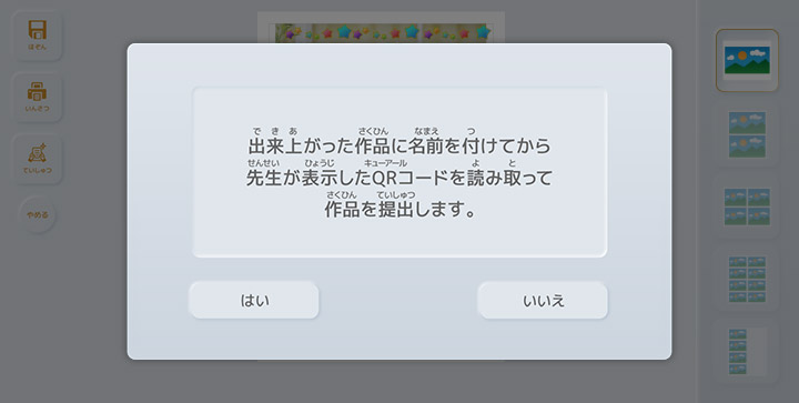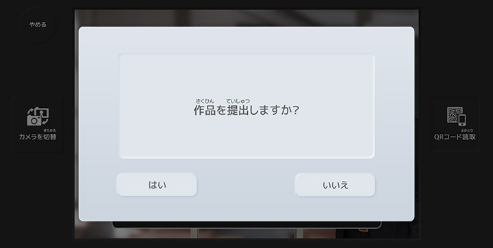 QRコードの読み込みに成功すると作品の提出を確認するウィンドウが表示されます。