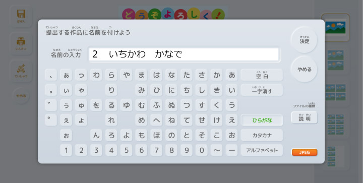 提出する作品に名前を入力し、【決定】を選択します。