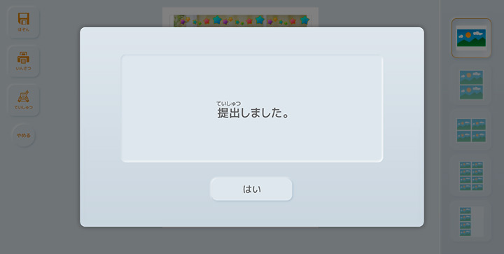 『はい』を選択すると作品が提出されます。
